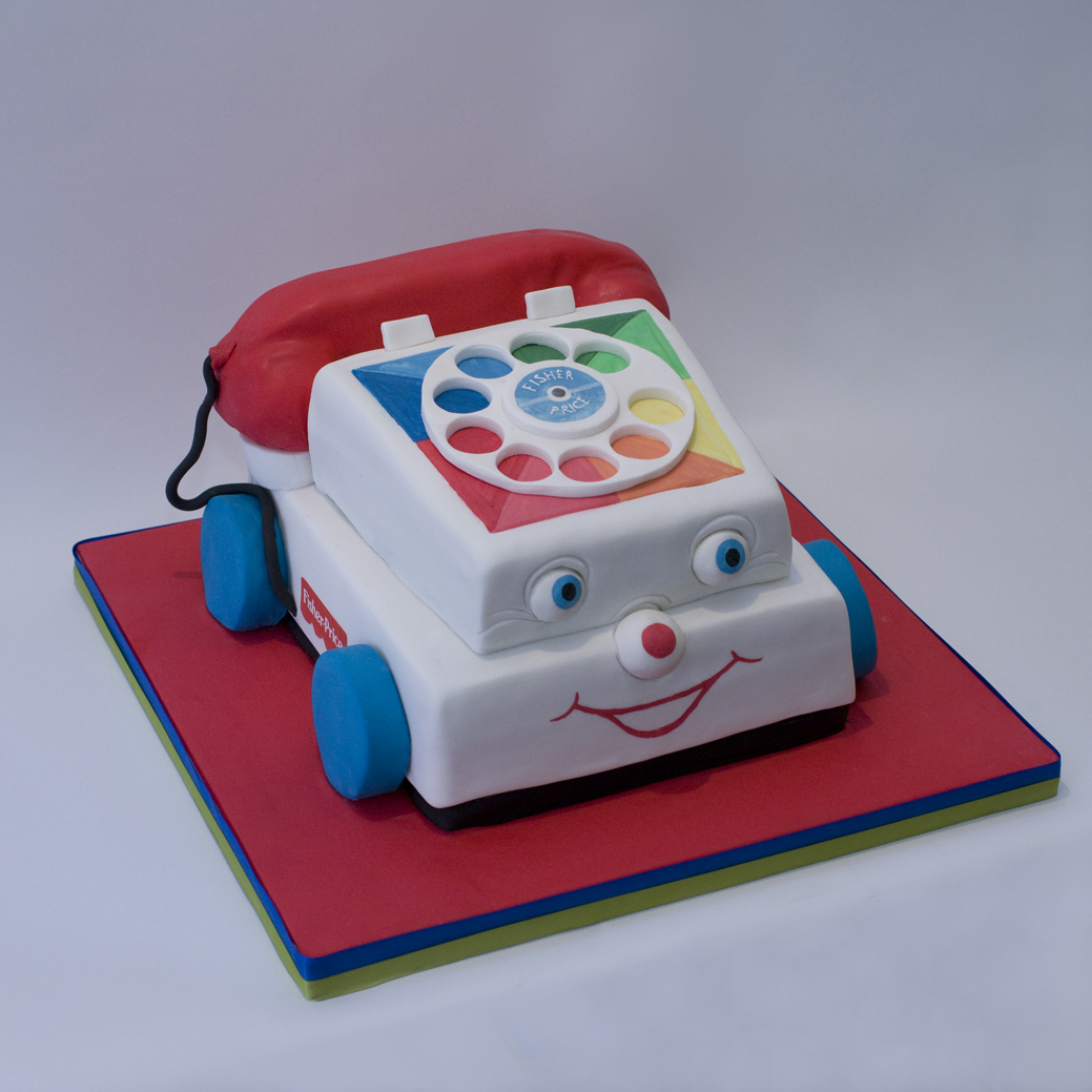 Then there’s every little girl’s favourite toy, My Little Pony, atop a cake featuring a whimsical rainbow, and last but not least the Fisher Price phone. You’d certainly want to give someone a call if you received one of these, wouldn’t you?!